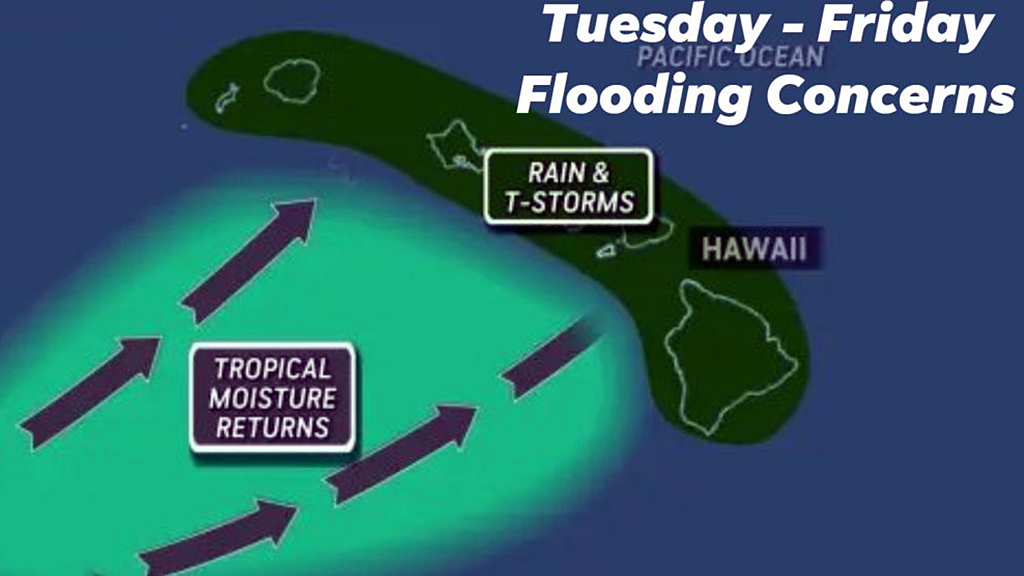 UPDATE (April 6): Flood watch from April 8th (morning) through 10th (afternoon) HST with the bulk of the...