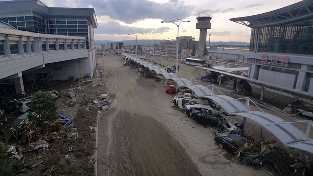 Back on March 11, 2011, Sendai Airport in Iwanuma City was first damaged by the M9.0 earthquake, and then completely inundated by the massive tsunami. The following photo is what many will remember from the television broadcasts and countless aerial photos.