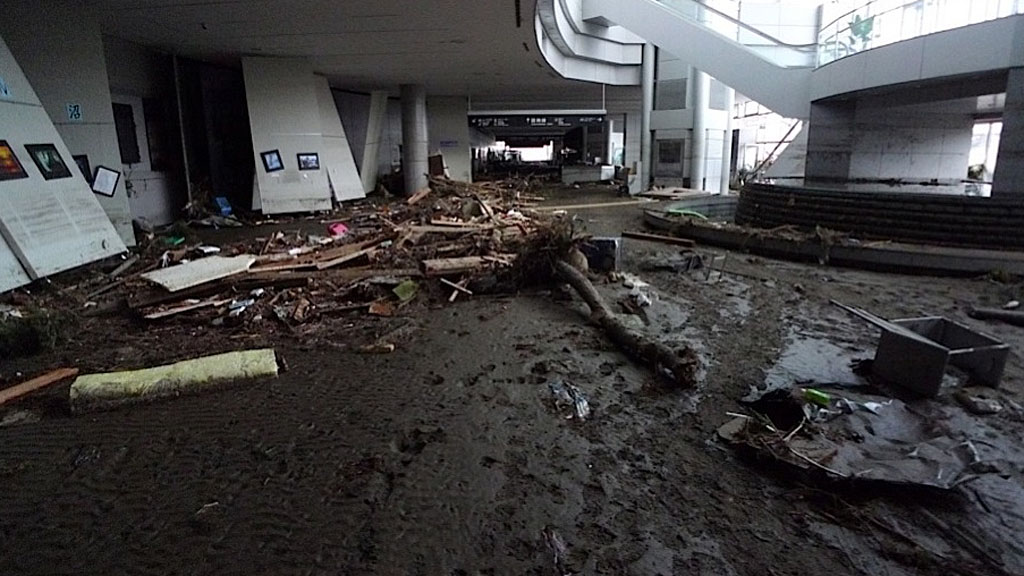 The following support column inside the terminal shows how high the tsunami had reached (3.02 meters or 9.9 feet).
