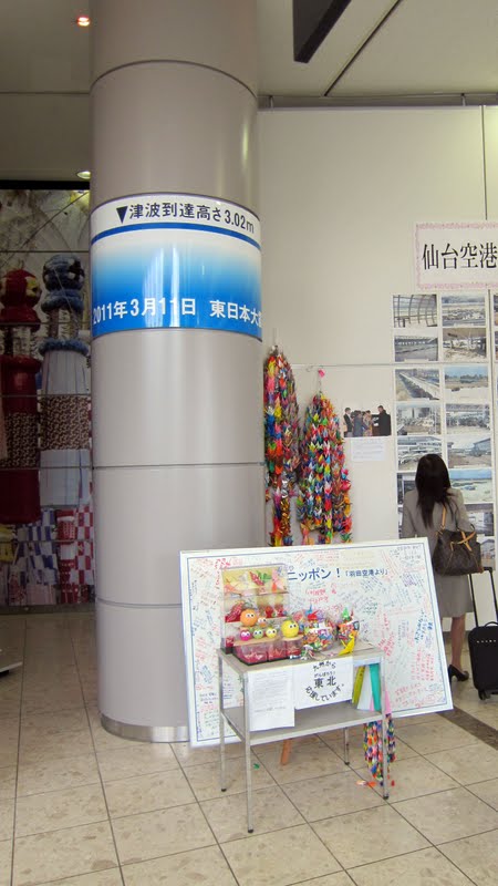 The following video (no audio) is a short spin around the airport. Sendai Airport Station is the building on the right at the 50 second mark. This too was heavily damaged by the quake and tsunami; it reopened in November 2011.