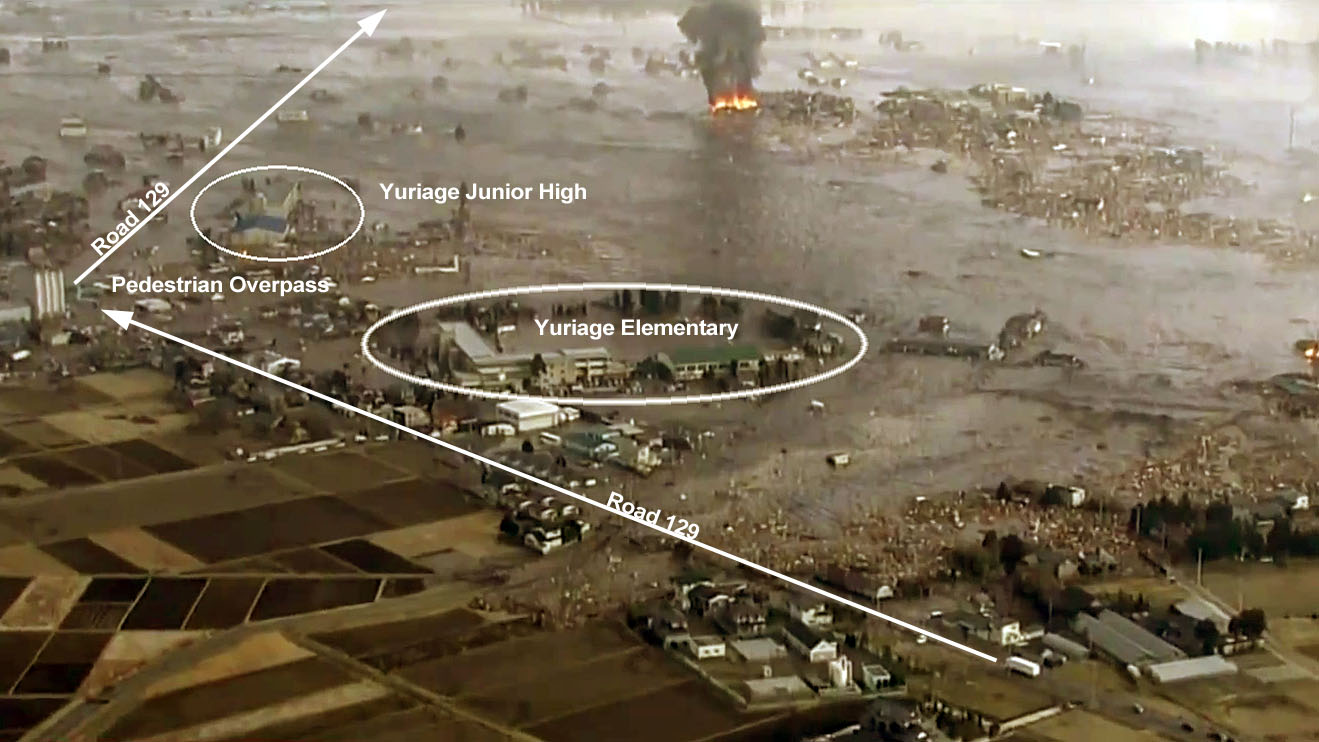 The following is a small portion of that broadcast with some annotations to provide a point of reference to some of the images taken one year after the disaster (further below).
