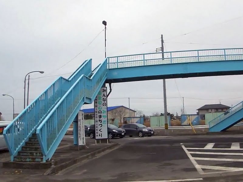 | Pedestrian Overpass (the following video was shot from this bridge – the building with the blue roof is where Yuriage Junior High School is located) |
