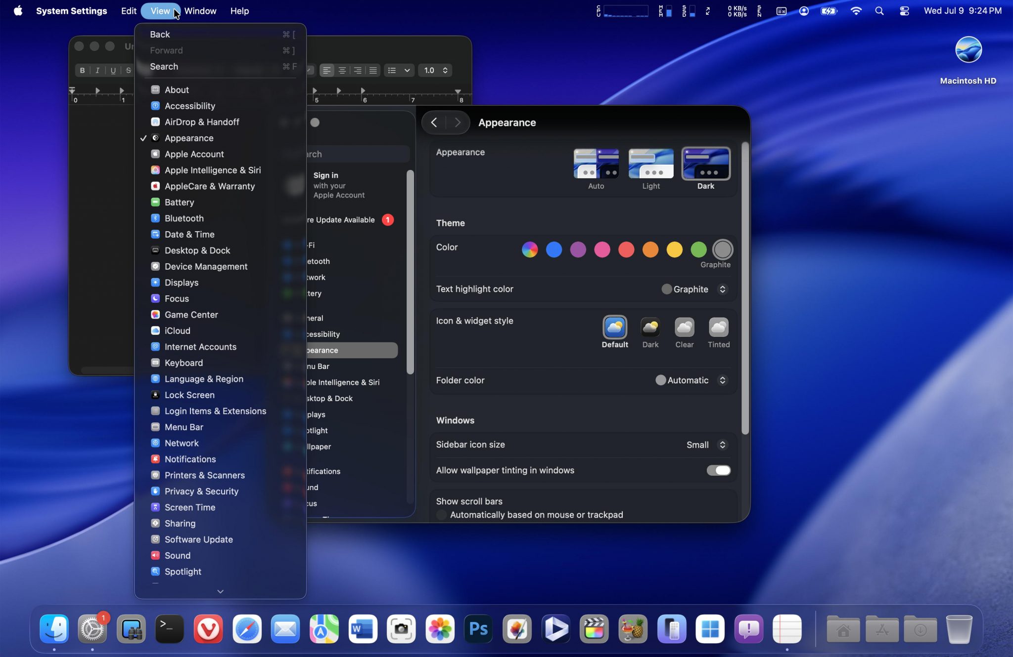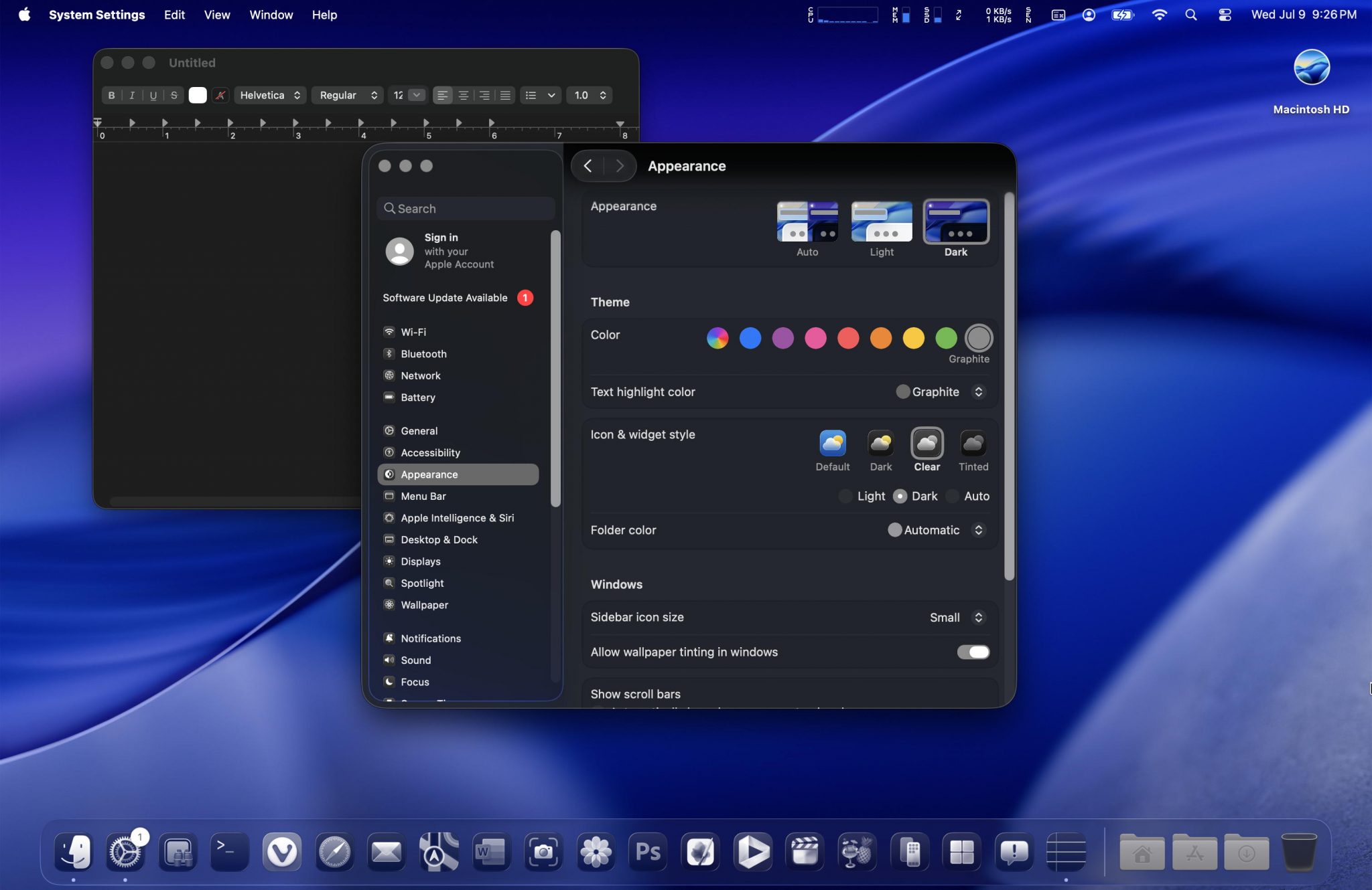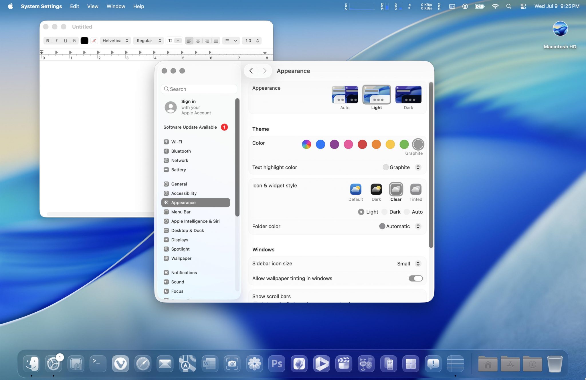 Installed the developer beta for Tahoe (mainly to check out the Liquid Glass user interface) on my MacBook Pro (M4 M3 Pro – typo). The light/clear appearances has the potential for making readability difficult (reminding me of Yosemite back in the day). Increasing the contrast (in accessibility) does help with creating some separation between windows. Since this is a few builds in from the original that was released during WWDC, Apple may have made some tweaks since that time. This light appearance is something I wouldn’t use.