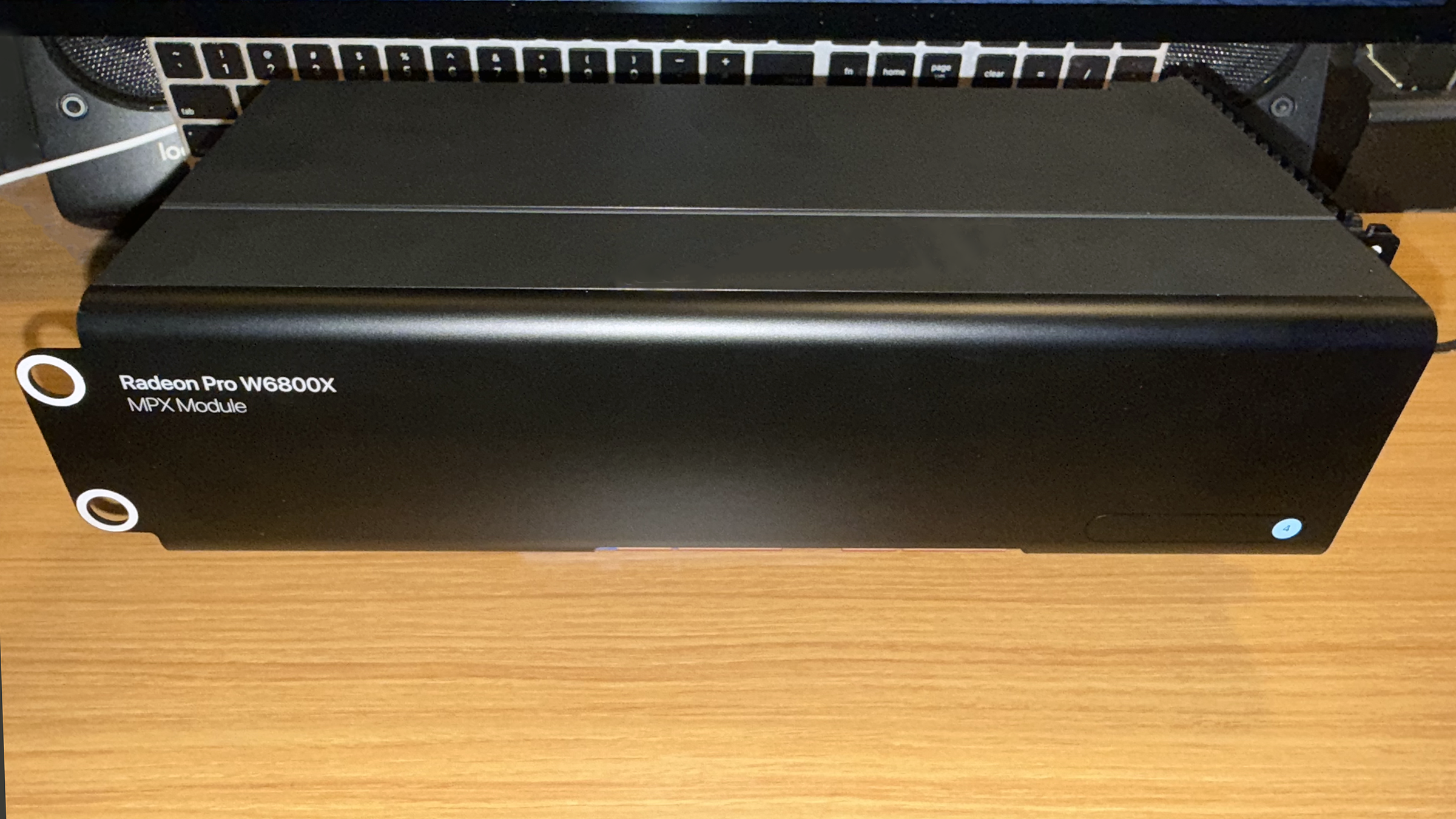 There are times when I need to question my sanity (like why am I buying this GPU for a now 6 year old system?) To be fair (to myself), I bought this 2019 Mac Pro as a certified refurb in June 2023 after seeing the Apple Silicon based Mac Pro (announced at WWDC 2023). Back in 2021 when this graphics card was released, the single module went for $2,400 (the Duo version with Infinity Fabric Link went for a cool $5K). The last highest end GPU for this Intel based Mac Pro was the Radeon Pro W6900X; that one went for $6,000. Thus the only “saving grace” was paying a fraction of the original price (but still…)