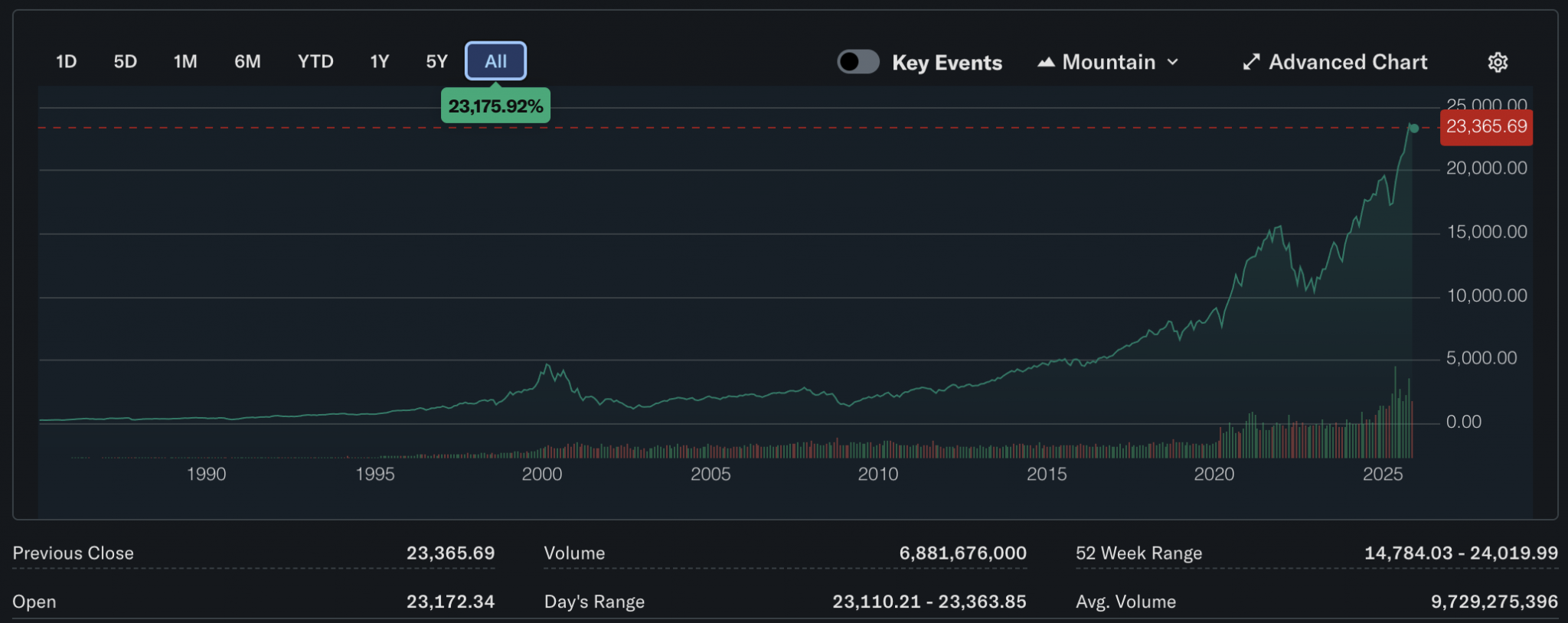The dot.com bubble is that smaller peak back in 1999-2000. The NASDAQ composite itself has most of these tech companies where the current AI and crypto bubble exists where the entire reality of actual fundamentals no longer exists when taking into account these global tariffs that are being unilaterally (and often times unlawful) pushed by that orange colored criminal running the US. This recent selloff is miniscule when considering it is only slightly off its recent all-time high of 24,019.99 (the percentage difference is what matters).