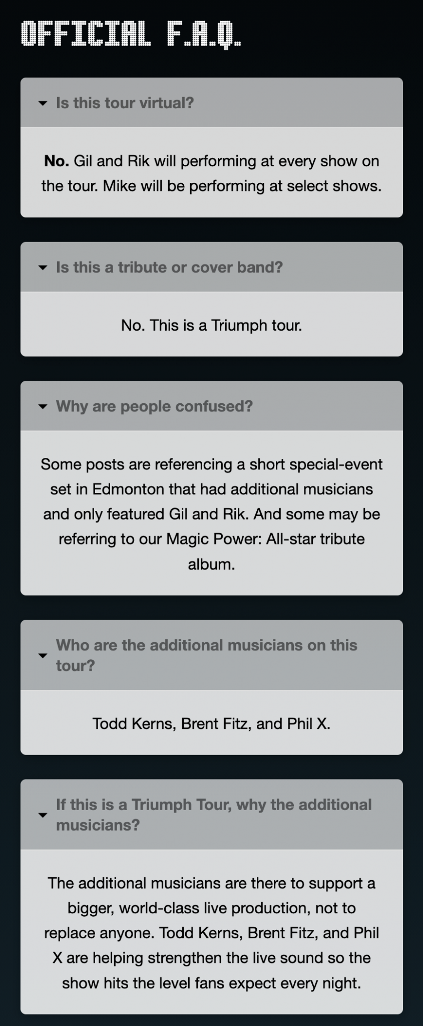 I wrote the following knowing parts of these details (like them being joined by 3 other musicians). The only part that wasn’t clear was each members involvement at each show which they have now clarified that both Gil and Rik being there every night while Mike will be at select shows (basically the medical issues he has been dealing with). That part is understandable but this revelation might be enough to dampen ticket sales unfortunately.