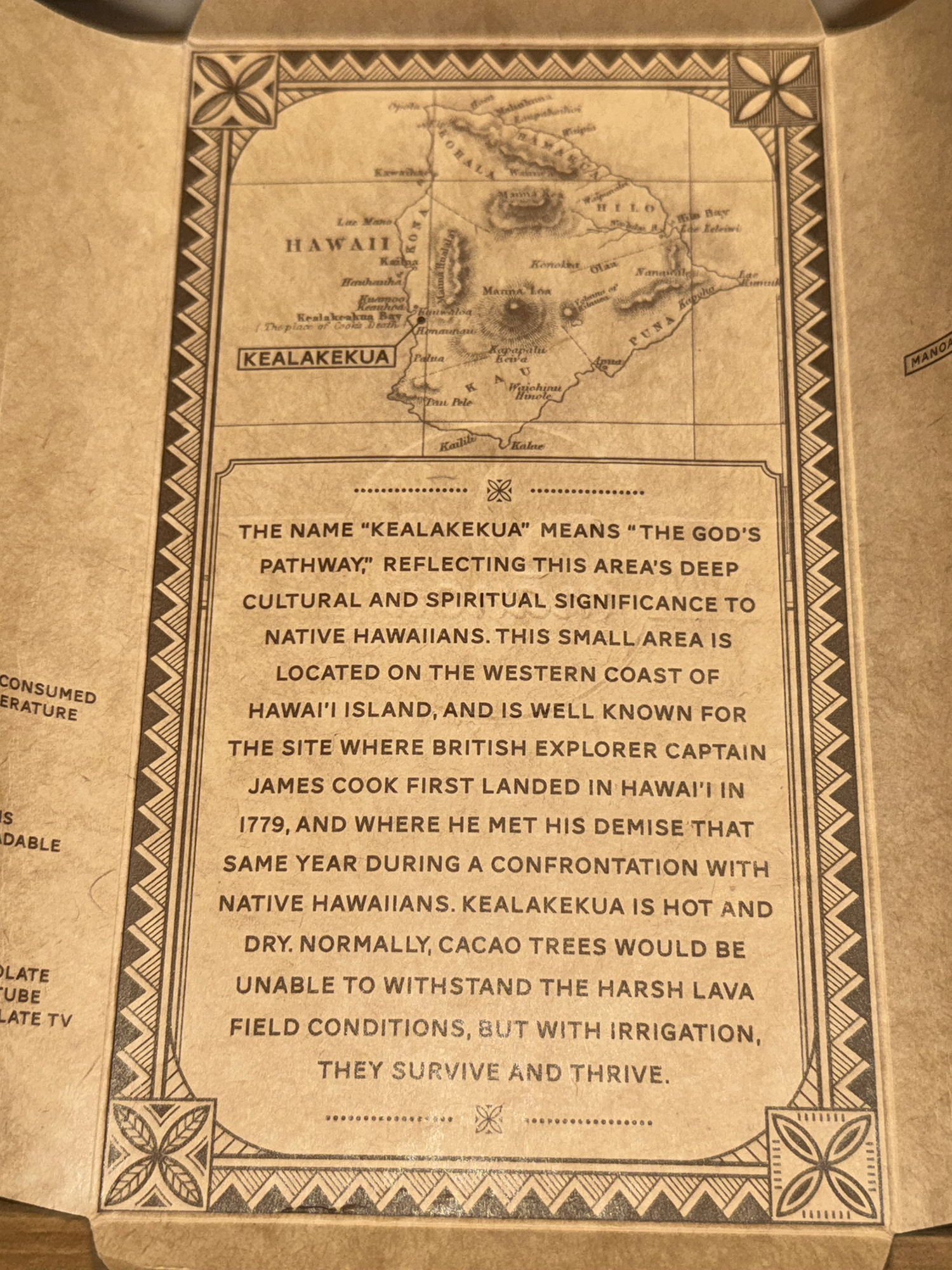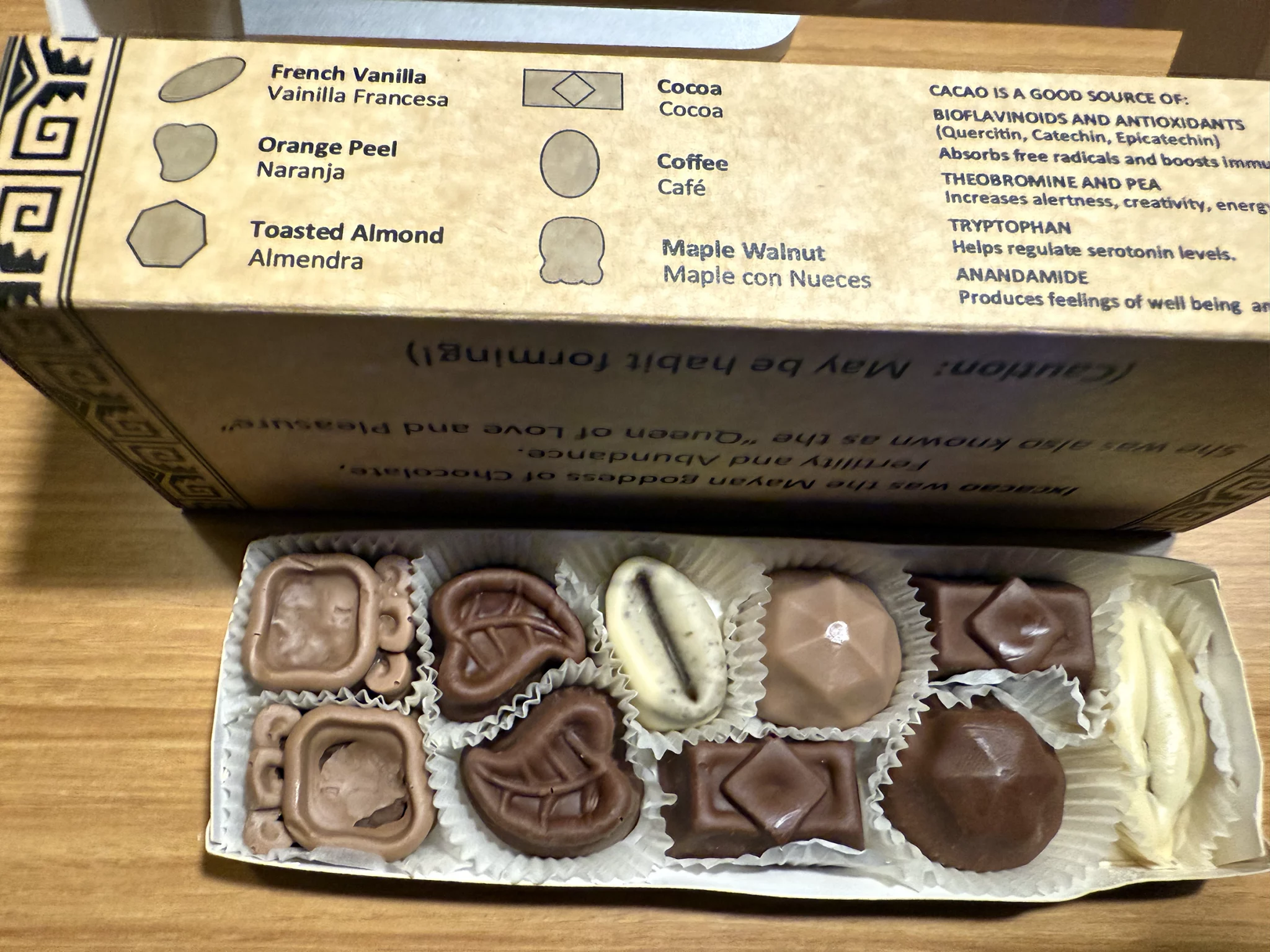 I also liked the simple design of the box (with its Mayan culture cues on it). Again, this respect and the significance is something I always appreciate in the design of products (and their packaging) even if that product happens to contain a consumable like a bar of chocolate. The bottom of the box also had a sense of humor to it (caution: may be habit forming!)